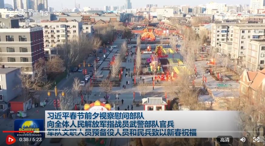 在中華民族傳統(tǒng)節(jié)日春節(jié)來(lái)臨之際,中共中央總書記、國(guó)家主席、中央軍委主席習(xí)近平24日到北部戰(zhàn)區(qū)機(jī)關(guān)視察慰問(wèn),通過(guò)視頻看望基層官兵,檢查部隊(duì)?wèi)?zhàn)備值班和執(zhí)行任務(wù)情況,代表黨中央和中央軍委,向全體人民解放軍指戰(zhàn)員、武警部隊(duì)官兵、軍隊(duì)文職人員、預(yù)備役人員和民兵致以誠(chéng)摯問(wèn)候和新春祝福。