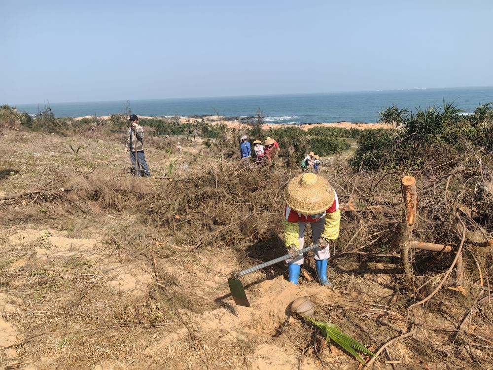 “和原來(lái)的木麻黃樹(shù)相比,椰子樹(shù)不僅抗風(fēng)能力更強(qiáng),也更加美觀(guān)?!惫と隧n吉衍嫻熟地將一鍬紅土鏟到剛種下的椰苗根部,并輕輕拍打夯實(shí),“這一片椰林要種280畝,我們每天干八九個(gè)小時(shí),這幾天就要種完?!?/p>