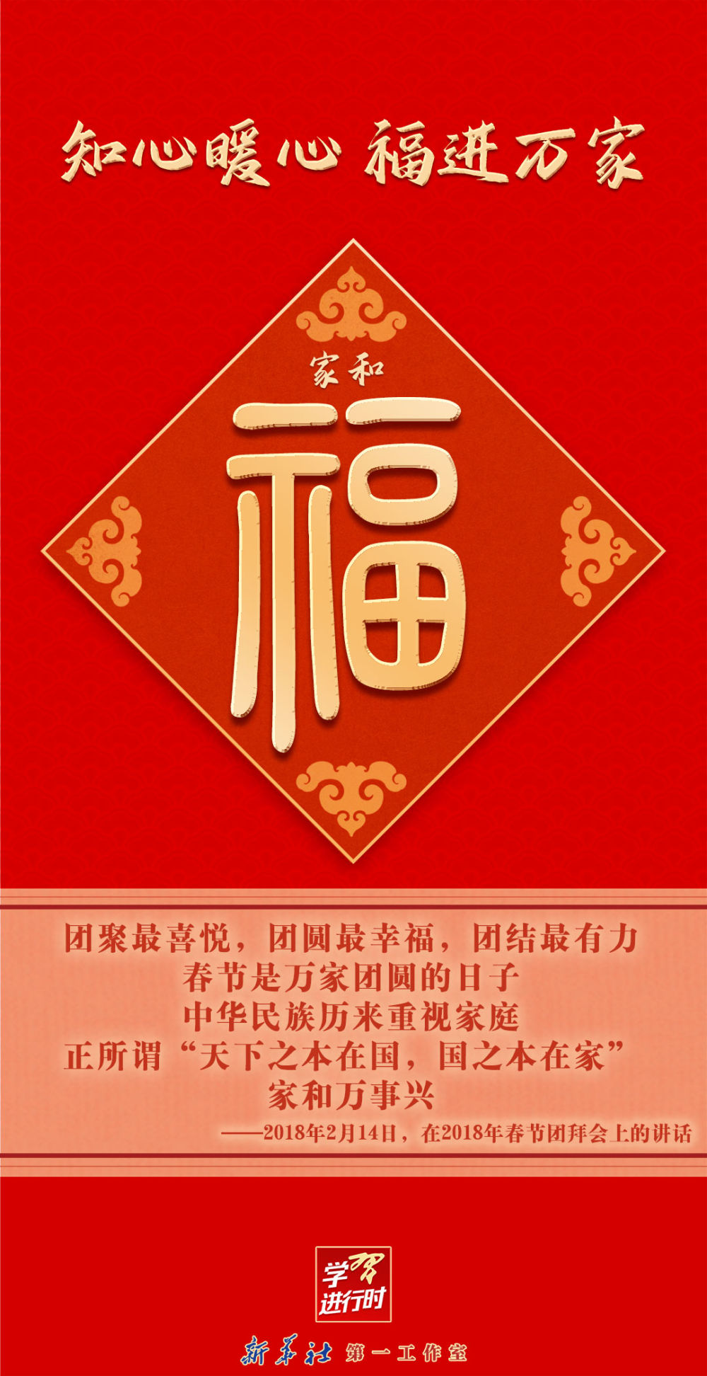 【學(xué)習(xí)進(jìn)行時(shí)】迎春納福,是中國人的春節(jié)習(xí)俗。一個(gè)“?!弊?,承載著中國人對美好生活的向往。這些年,習(xí)近平總書記很多知心話道出了我們對幸福的追求。乙巳蛇年春節(jié)來臨之際,一起重溫。