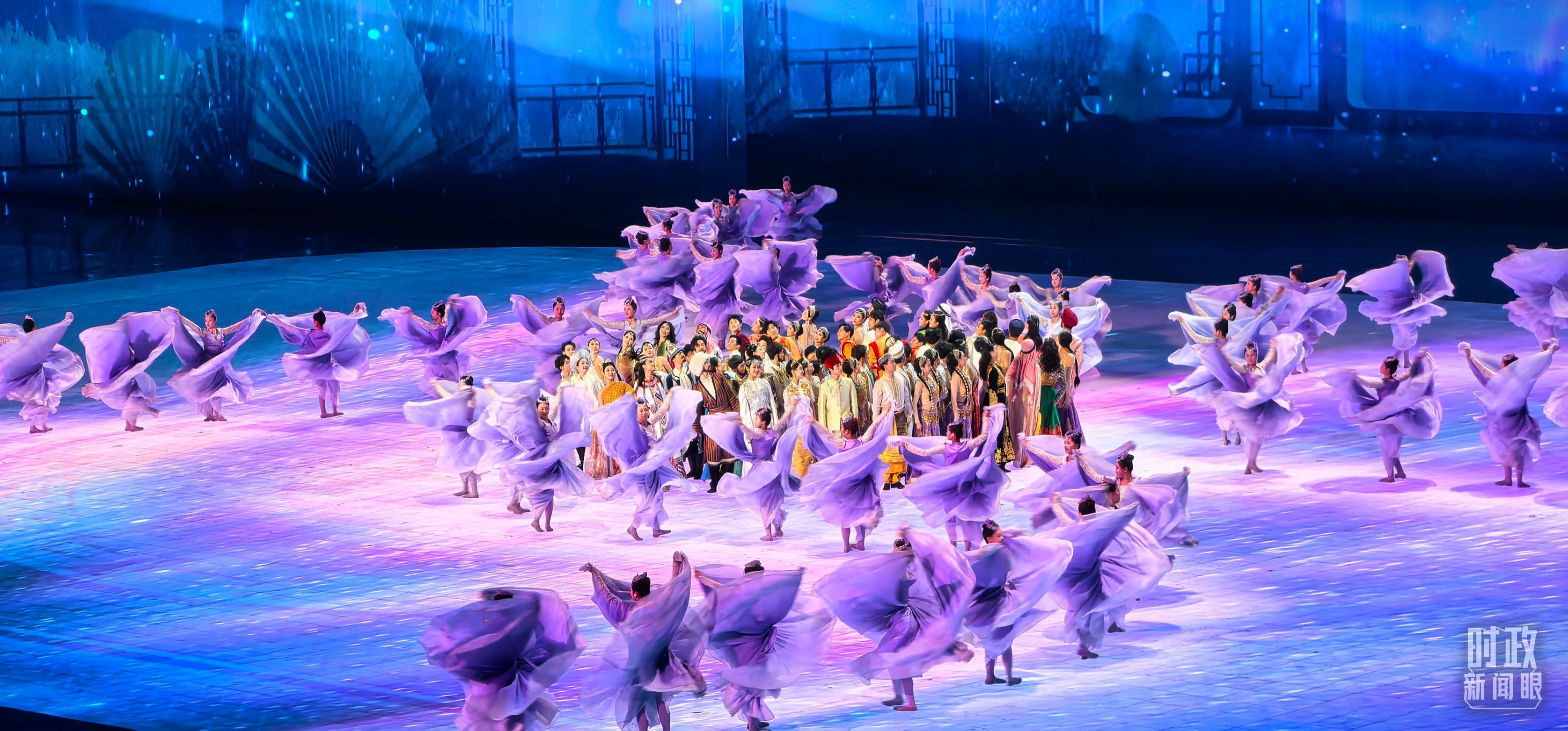 文藝表演分為上篇《熾熱冰雪》、中篇《燃情時速》、下篇《山高水長》,通過《長歌頌冰河》《榮光耀未來》《馳騁天地間》《璀璨嘉年華》《攜手情久長》《萬里共和鳴》等節(jié)目,展現(xiàn)化“極寒”為“極美”“極燃”“極暖”的意蘊。