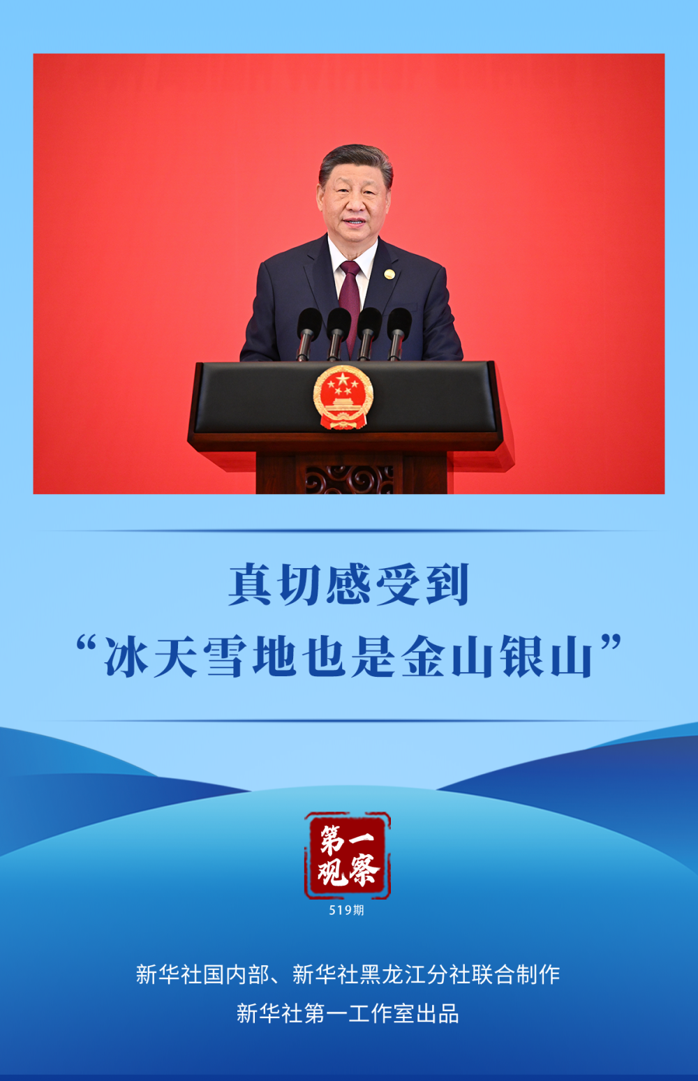 總書記在致辭中充滿熱情地說:“歡迎大家暢游這片熱情洋溢、開放包容的黑土地,追尋中國式現(xiàn)代化足跡?!痹谶@片人與自然和諧共生的冰天雪地之中,人們見證中國式現(xiàn)代化的蓬勃實踐。