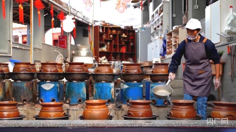 制作盬子雞的盬子,來自當?shù)厥〖壏俏镔|文化遺產代表性傳承人母先才的陶藝館。2014年,在政府的幫扶下,母先才依托傳統(tǒng)技藝開設了陶藝館?,F(xiàn)在,他不僅把原來的土窯改成了更加環(huán)保的電窯,還把工坊變?yōu)榧铺?、研學、餐飲為一體的陶藝館,受到游客歡迎。