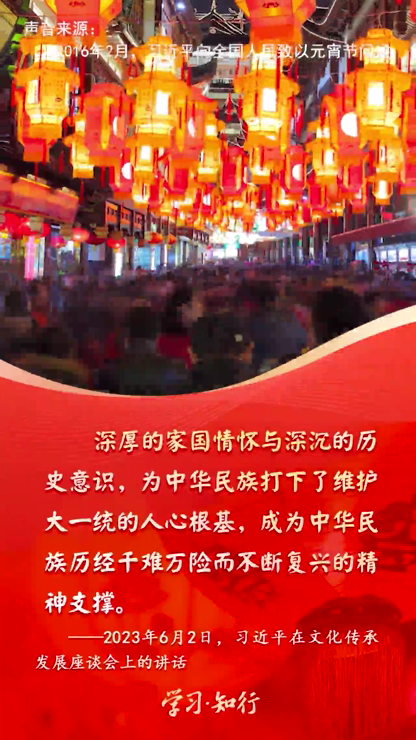 元宵佳節(jié)既是萬(wàn)家團(tuán)圓的日子,也是愛(ài)國(guó)愛(ài)家同頻、家國(guó)情懷共融的時(shí)刻。習(xí)近平總書(shū)記多次闡述家庭與社會(huì)、家庭與國(guó)家之間的關(guān)系。從總書(shū)記的溫暖話語(yǔ)中,一起感受至真至誠(chéng)的家國(guó)情懷。