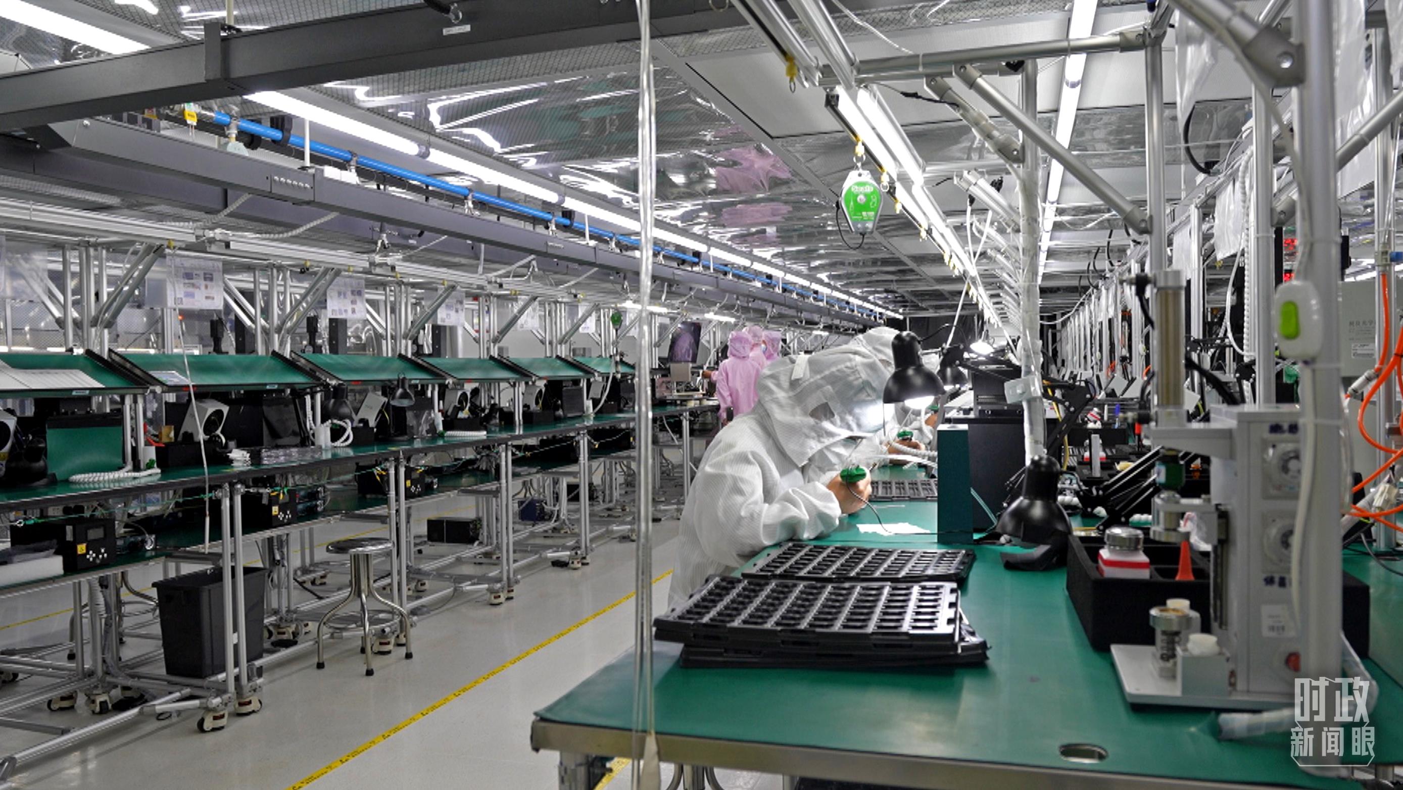四川省宜賓市極米光電有限公司的無塵車間光機(jī)組裝線。(總臺央視記者范學(xué)禹拍攝)