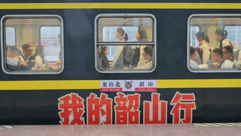 △湖南龍山縣青年學(xué)子乘坐紅色研學(xué)專列。