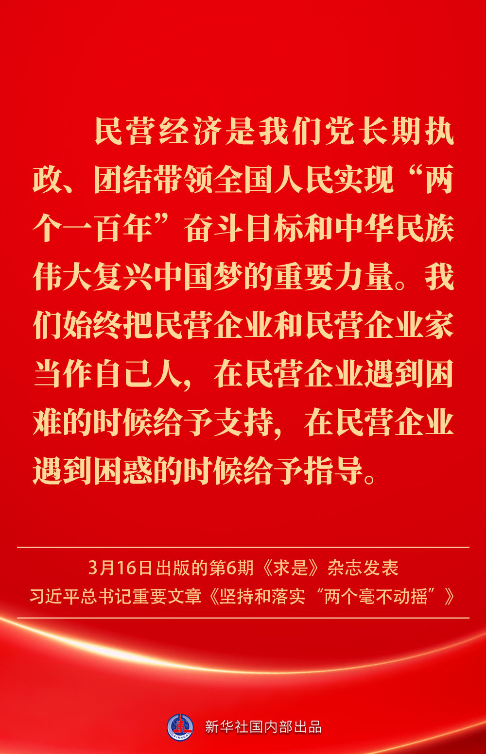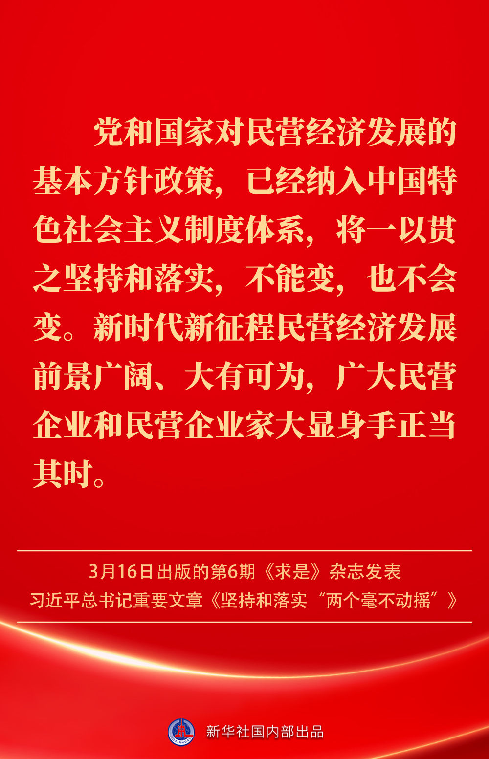 3月16日出版的第6期《求是》雜志發(fā)表習(xí)近平總書記重要文章《堅持和落實“兩個毫不動搖”》。這是習(xí)近平總書記2013年11月至2025年2月期間有關(guān)重要論述的節(jié)錄。如何認(rèn)識“兩個毫不動搖”?公有制經(jīng)濟(jì)和非公有制經(jīng)濟(jì)是怎樣的關(guān)系?習(xí)近平總書記這樣闡述——