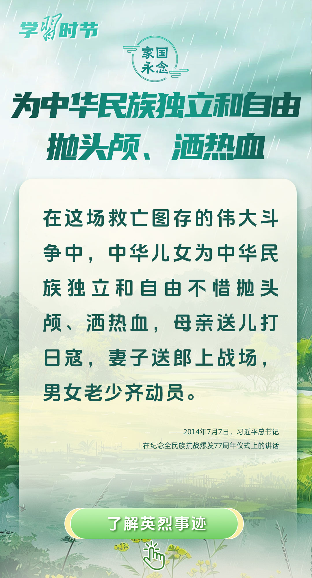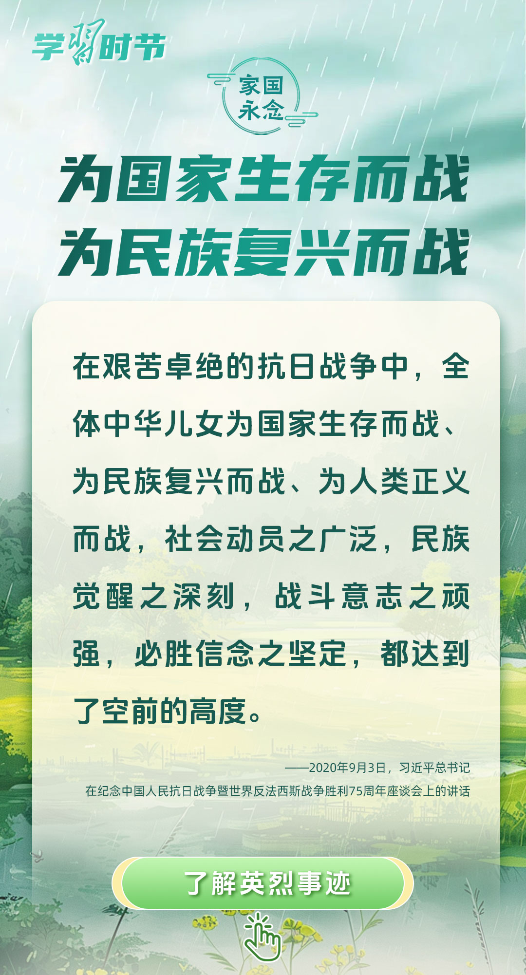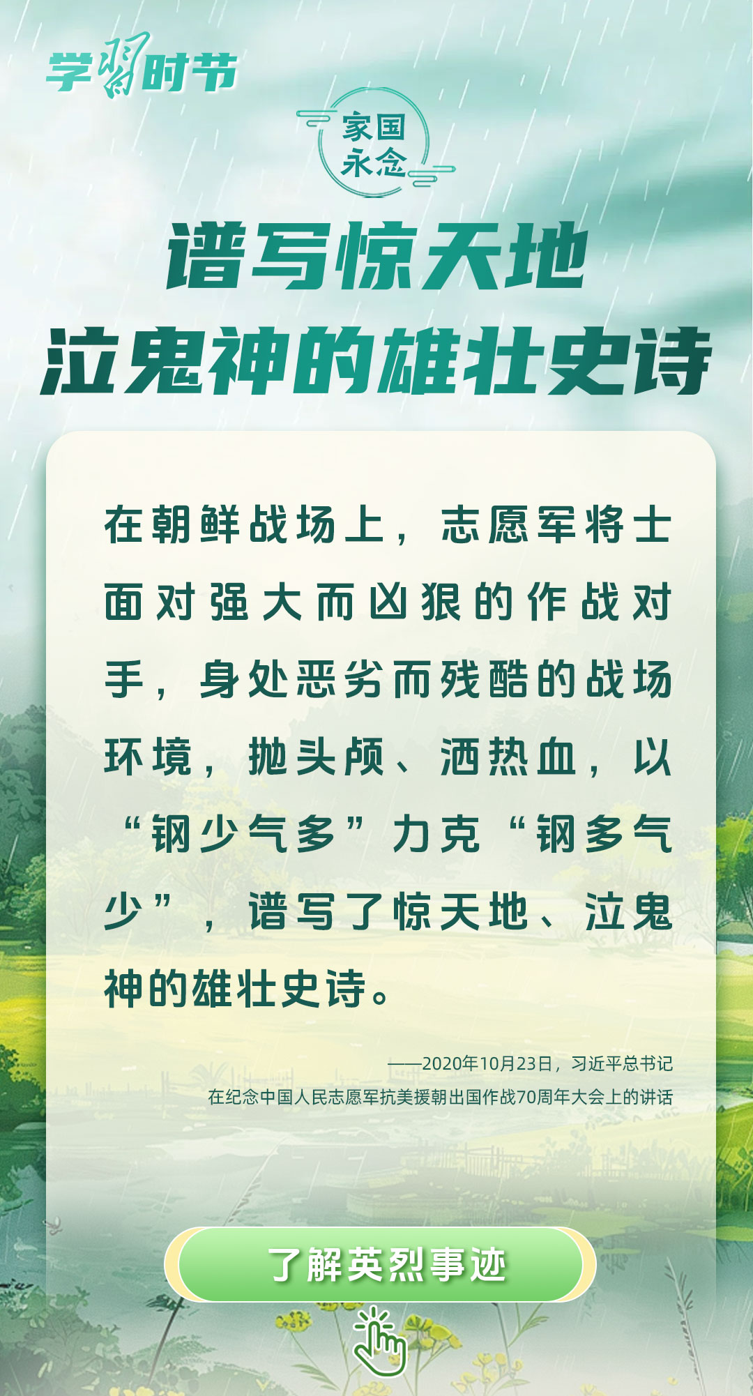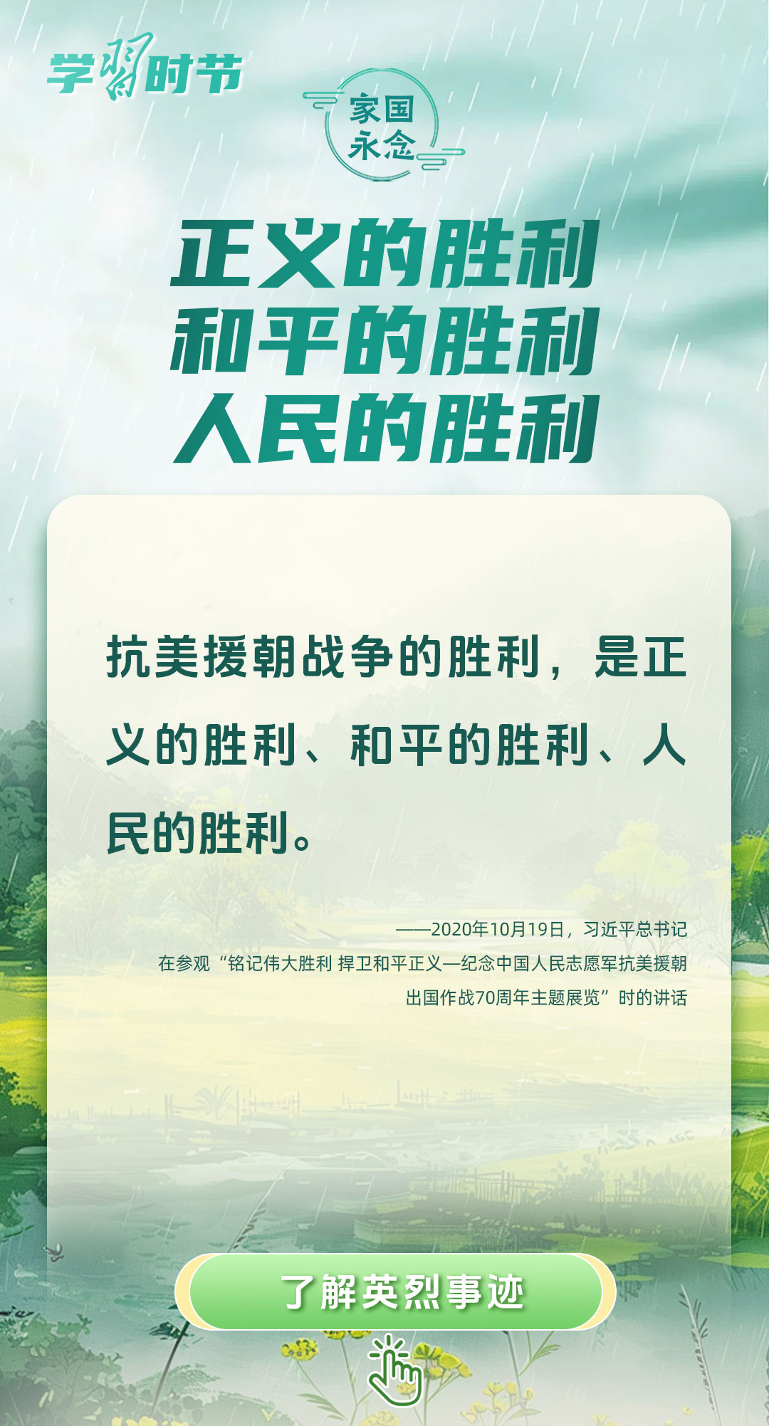 今年是中國(guó)人民抗日戰(zhàn)爭(zhēng)暨世界反法西斯戰(zhàn)爭(zhēng)勝利80周年、中國(guó)人民志愿軍抗美援朝出國(guó)作戰(zhàn)75周年。習(xí)近平總書(shū)記曾說(shuō):“對(duì)一切為國(guó)家、為民族、為和平付出寶貴生命的人們,不管時(shí)代怎樣變化,我們都要永遠(yuǎn)銘記他們的犧牲和奉獻(xiàn)。”今天我們所擁有的一切,無(wú)不凝結(jié)著英雄、英烈們的奉獻(xiàn)付出乃至巨大犧牲。