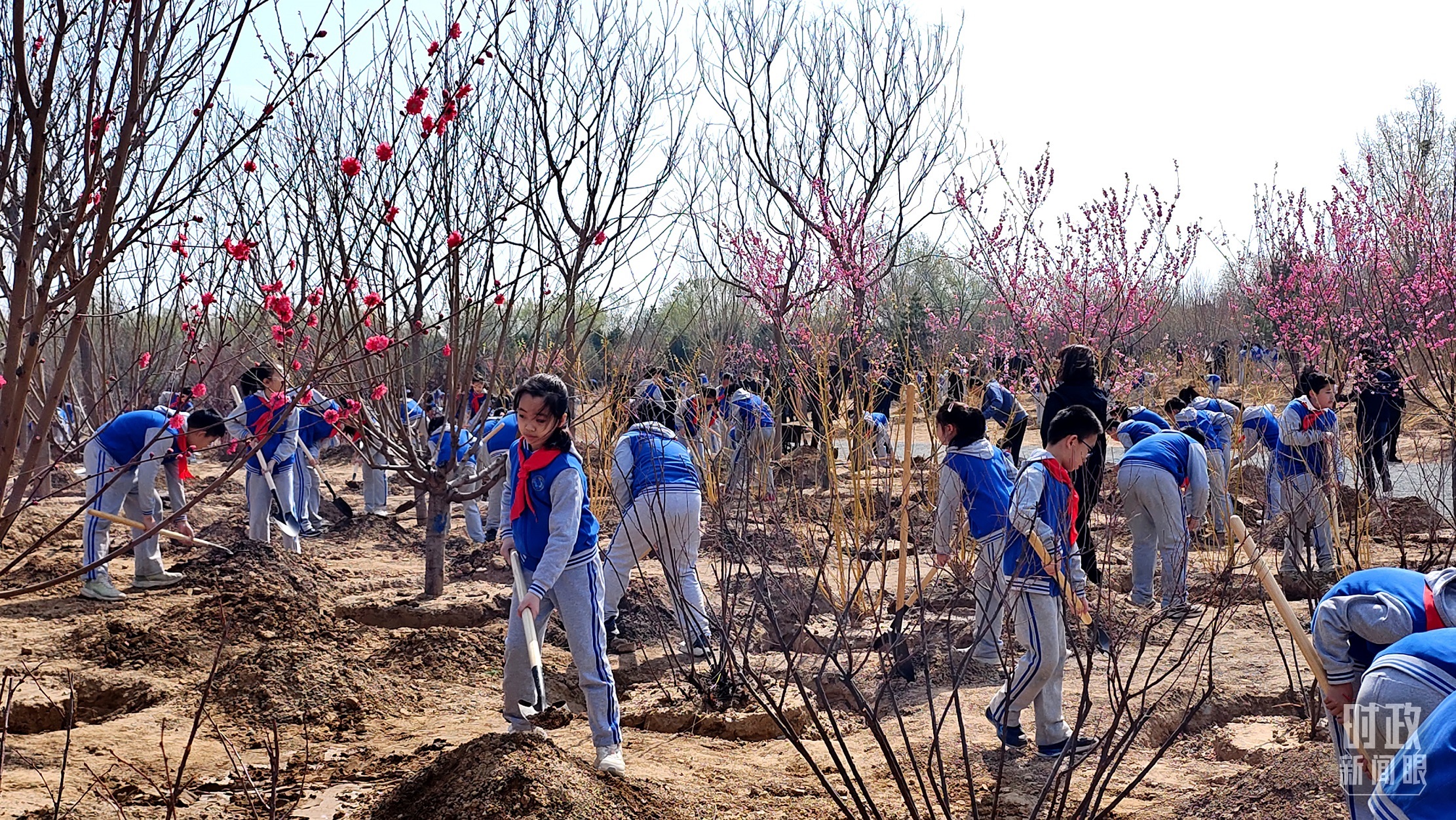 △少先隊(duì)員拿起鐵鍬參加義務(wù)植樹(shù)。(總臺(tái)央視記者范凱拍攝)