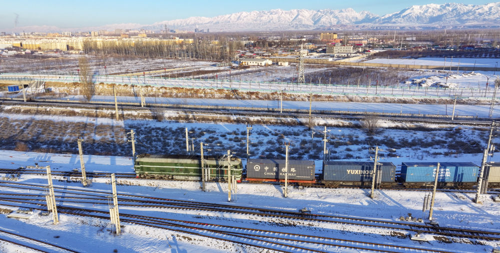 2024年12月25日,一列中歐班列經(jīng)霍爾果斯口岸駛向哈薩克斯坦(無人機(jī)照片)?;魻柟箍诎兜靥幰晾绻_克自治州、毗鄰哈薩克斯坦,是古絲綢之路北道上的千年驛站,也是近現(xiàn)代對外開放的百年口岸,更是我國面向中亞、西亞乃至歐洲的重要物流通道。2024年,該口岸中歐(中亞)班列開行量達(dá)8730列,同比增長12.5%;貨物過貨量達(dá)1208.4萬噸,同比增長10.9%;通行班列線路總數(shù)超過80條,輻射境外18個國家的46個城市。