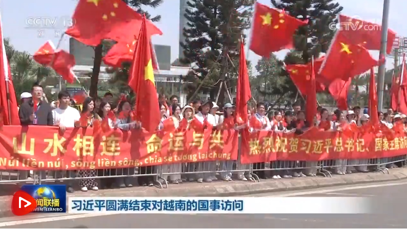 離開河內時,越南總理范明政,越共中央政治局委員、中央書記處常務書記陳錦繡,越共中央書記處書記、中央辦公廳主任黎懷忠等越南黨政領導人和地方代表到機場送行。當地民眾和中資機構、留學生代表高舉紅色橫幅,熱烈祝賀習近平訪問越南取得圓滿成功。