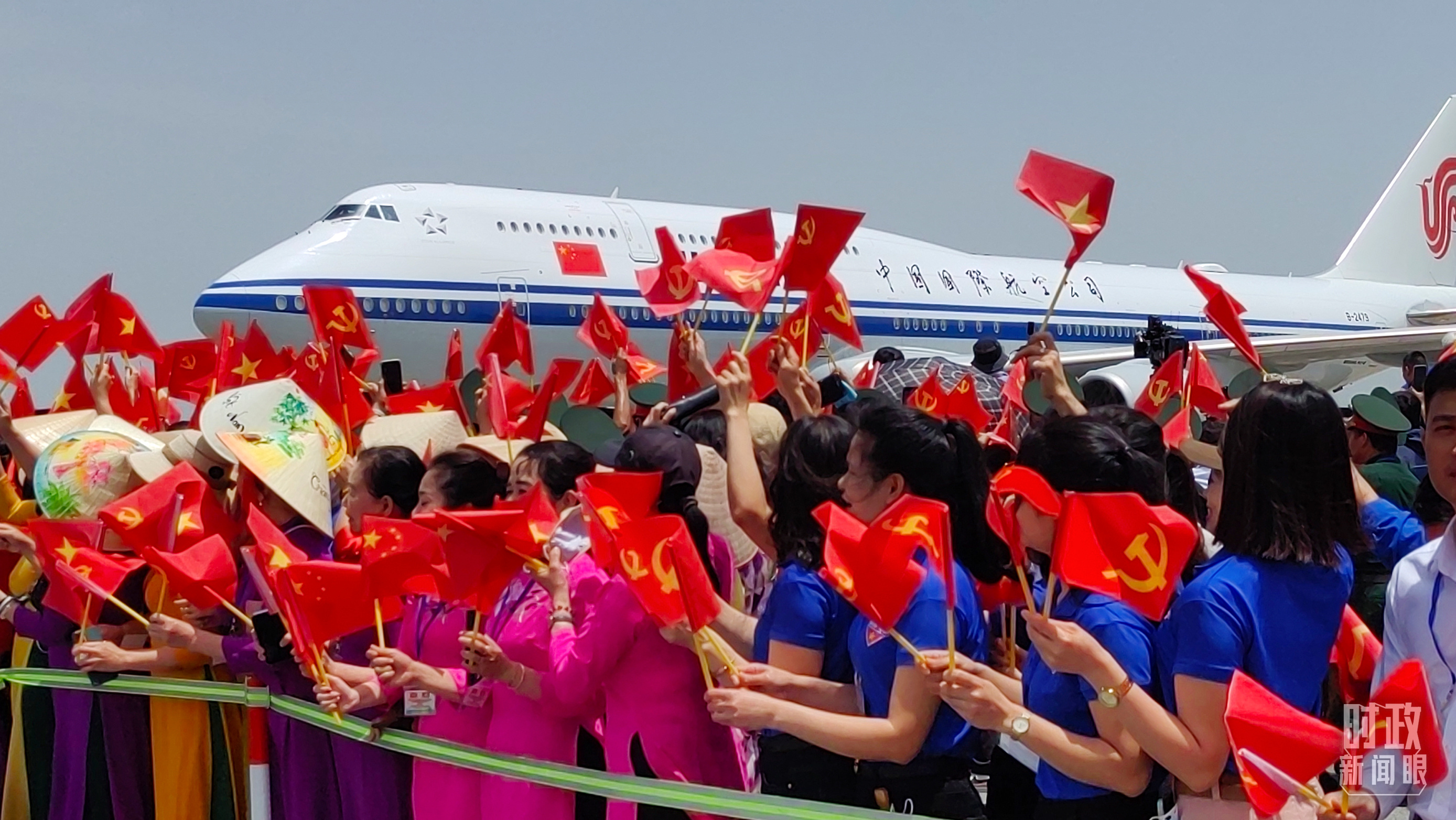 14日中午,習近平總書記乘坐的專機抵達越南河內內排國際機場。