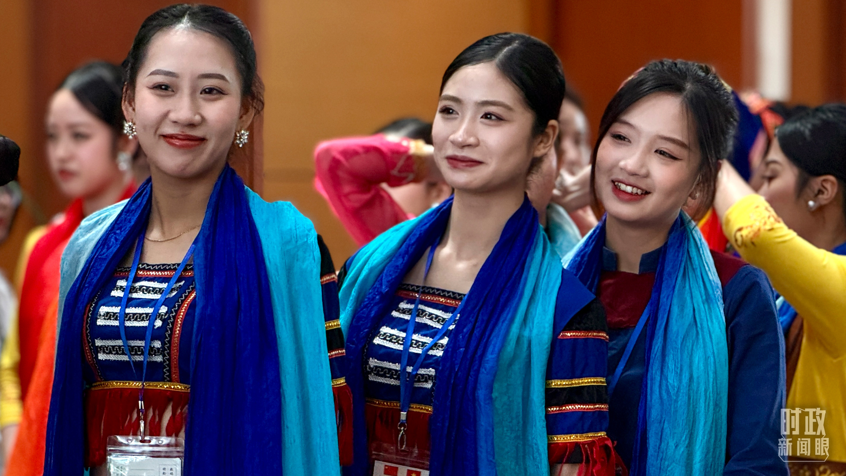 當地青年身著民族服裝等待迎接習近平總書記。(總臺央視記者謝曉光拍攝)