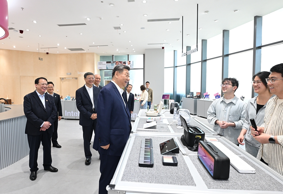 4月29日,中共中央總書記、國家主席、中央軍委主席習近平在上??疾?。這是習近平在位于徐匯區(qū)的上?!澳K倏臻g”大模型創(chuàng)新生態(tài)社區(qū)人工智能產(chǎn)品體驗店考察。