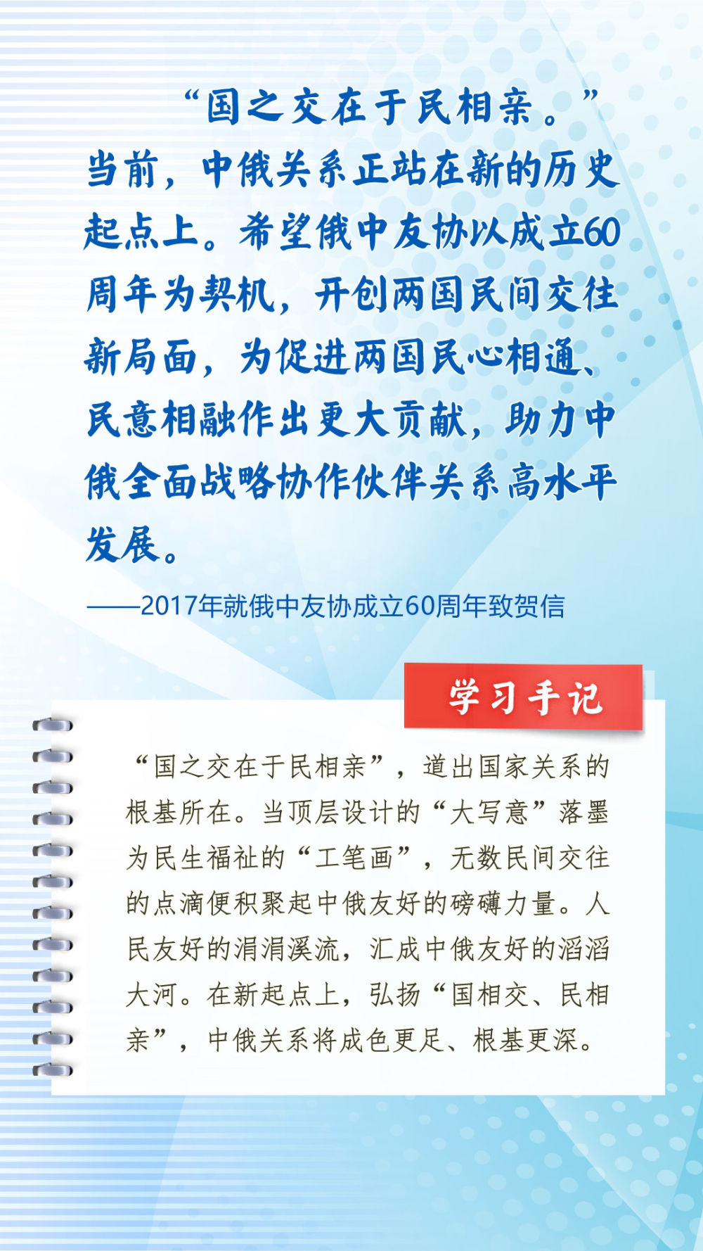 中華民族和俄羅斯民族都有悠久的歷史、古老的文明、燦爛的文化,都是偉大的民族。近年來,習近平主席常常引用中國詩詞古語、俄羅斯諺語名言等,寄語中俄關系發(fā)展和全人類和平與發(fā)展。這些重要論述,蘊含對文明、歷史的深邃思考,指引著新時代的中俄關系不斷向前,為世界百年變局中的人類文明進步事業(yè)指明方向。