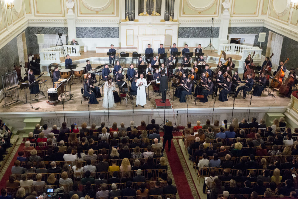 2019年11月13日,在俄羅斯圣彼得堡卡貝拉音樂廳,上海民族樂團(tuán)與安德烈耶夫國立模范民族樂團(tuán)的藝術(shù)家共同為觀眾獻(xiàn)上了一場名為《海上生民樂·和平頌》的精彩音樂會,開啟了上海民族樂團(tuán)2019俄羅斯巡演之旅。