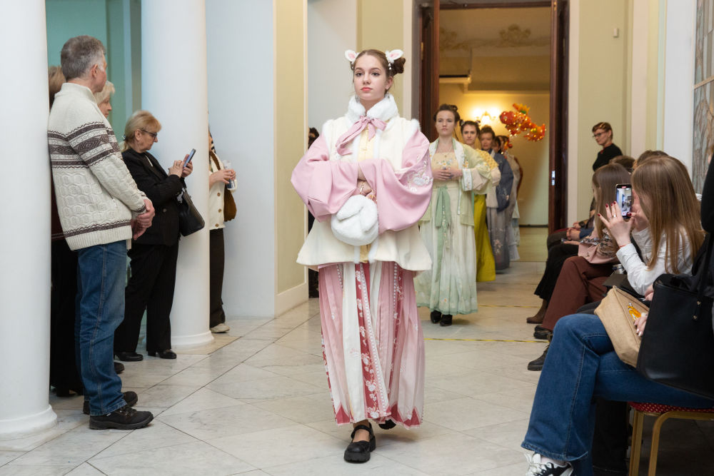 2023年1月30日,觀眾在俄羅斯圣彼得堡舉行的慶祝中國春節(jié)活動上欣賞中式服裝秀。
