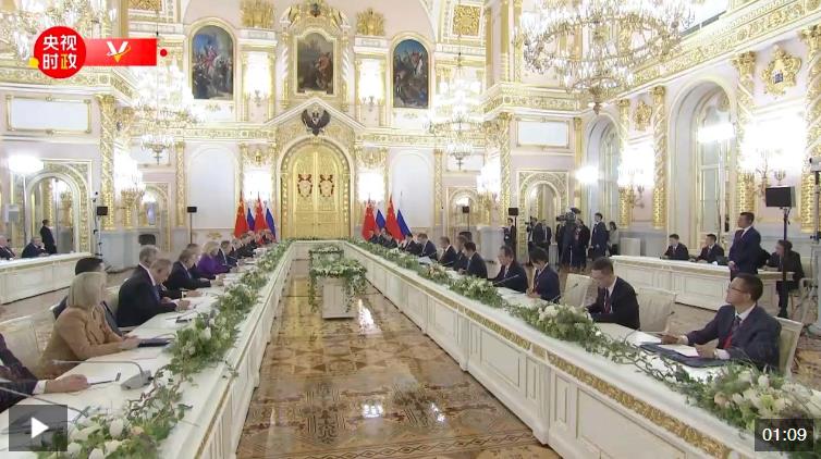 習近平強調,中國正在以中國式現(xiàn)代化全面推進強國建設、民族復興偉業(yè)。中方愿同俄方一道,承擔起時代賦予的特殊責任,維護全球多邊貿易體制和產業(yè)鏈供應鏈穩(wěn)定暢通,為促進兩國發(fā)展振興、維護國際公平正義作出更大貢獻。