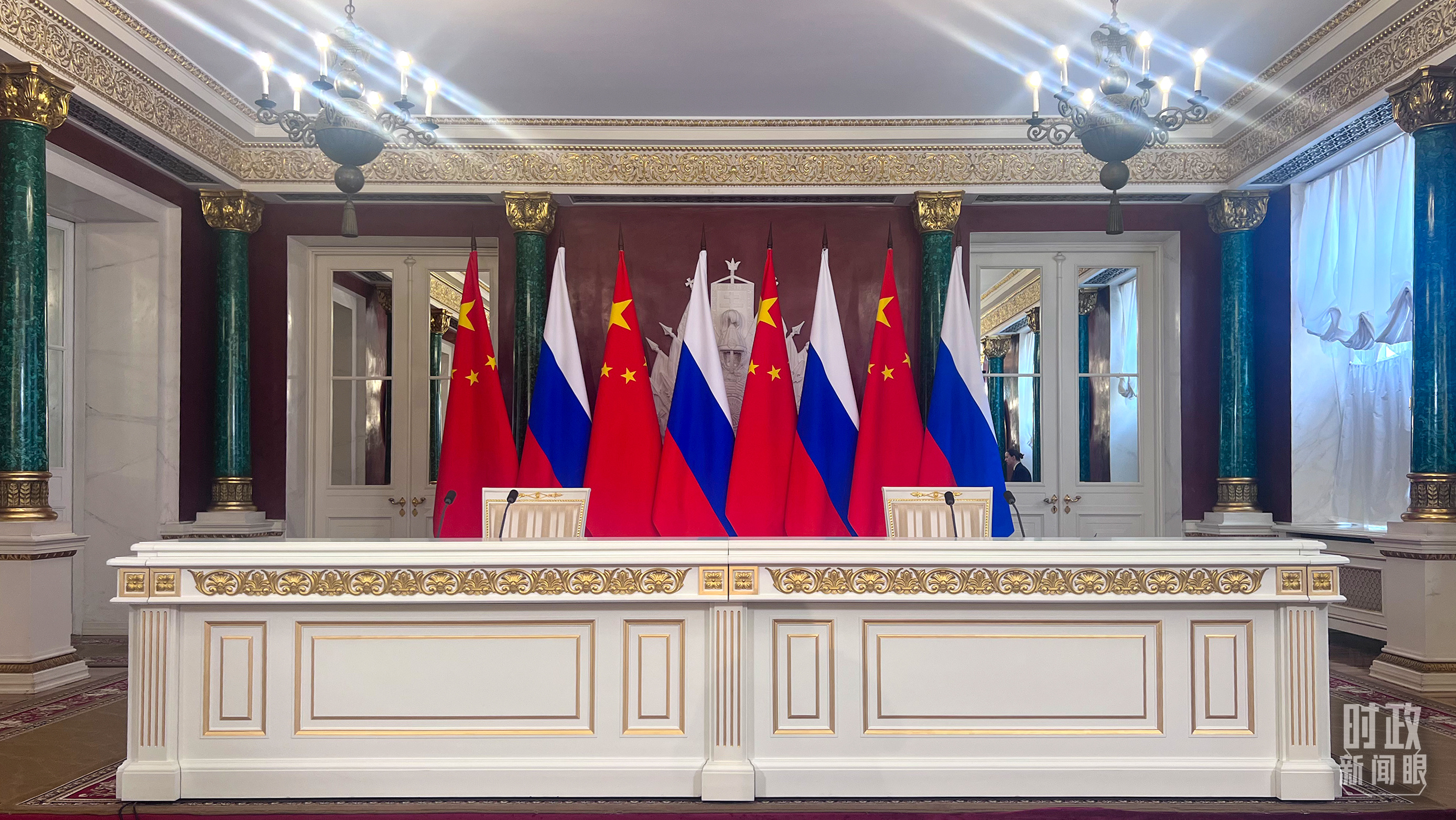 習(xí)主席和普京總統(tǒng)舉行大范圍會(huì)談的會(huì)場。(總臺(tái)央視記者趙東辰拍攝)
