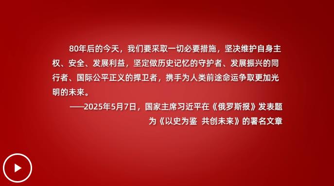 展望未來,在變亂交織的世界中,習(xí)近平強調(diào)“以史為鑒”,堅定做歷史記憶的守護者、發(fā)展振興的同行者、國際公平正義的捍衛(wèi)者,攜手為人類前途命運爭取更加光明的未來。
