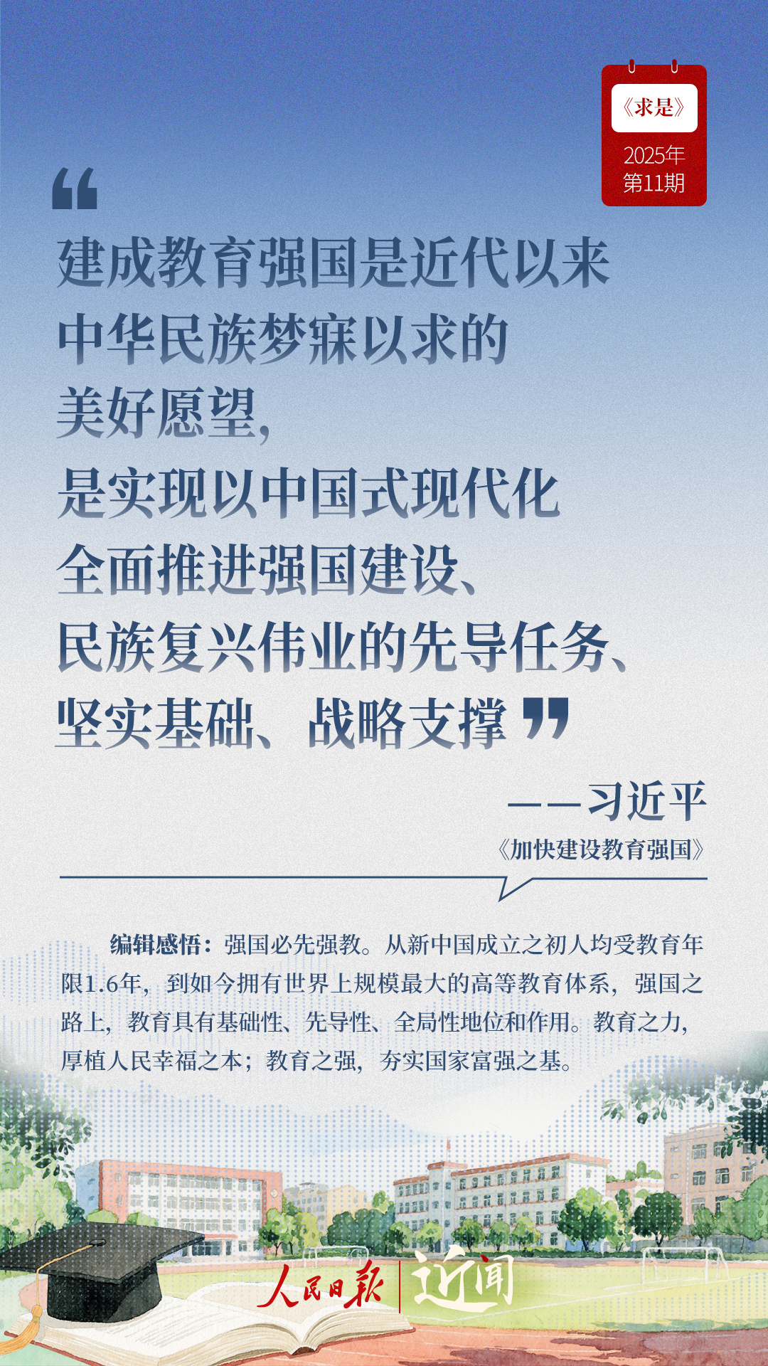 教育是國之大計、黨之大計。日前,《求是》雜志發(fā)表習(xí)近平總書記重要文章《加快建設(shè)教育強國》。“全面把握教育的政治屬性、人民屬性、戰(zhàn)略屬性”“讓教育改革發(fā)展成果更多更公平惠及全體人民”“讓教師享有崇高社會聲望、成為最受社會尊重的職業(yè)之一”……通過這些話,一起感悟習(xí)近平總書記對教育強國建設(shè)的謀劃與部署。