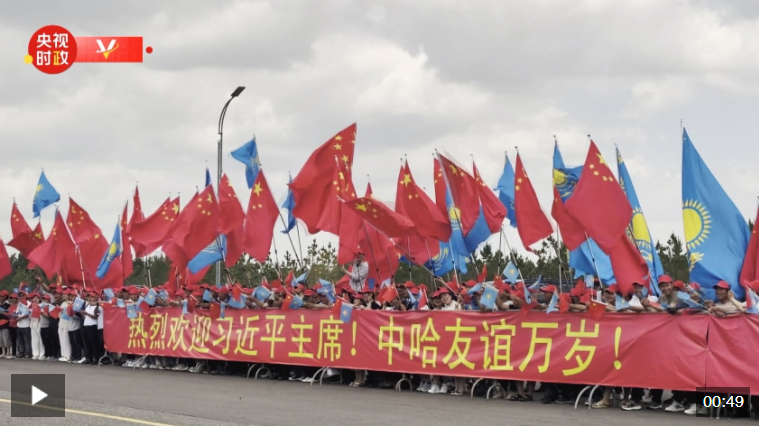 當?shù)貢r間6月16日中午,習近平主席乘車從機場赴下榻飯店途中,中資企業(yè)和留學生代表聚集在道路兩旁,手持“熱烈歡迎習近平主席!”“中哈友誼萬歲!”等紅色橫幅。哈方直升機沿途護衛(wèi),熱烈歡迎習近平主席到訪。