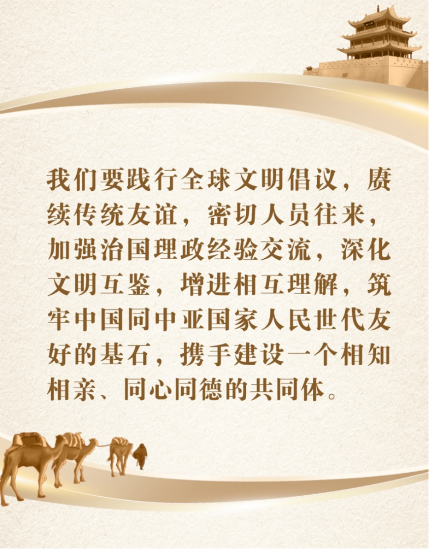 兩千年前,駝鈴叮咚串起中國與中亞的文明星火。如今,在共建“一帶一路”的脈搏里,中國與中亞國家的文明對話不斷加深,在新時(shí)代煥發(fā)出勃勃生機(jī)和旺盛活力。