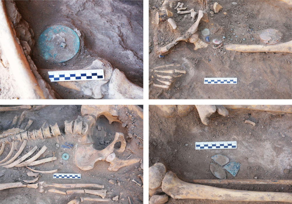 烏茲別克斯坦蒙扎鐵佩遺址M7隨葬品出土情況(拼版