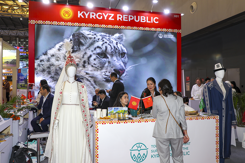 △ 2025年5月27日,2025上海國(guó)際旅游交易博覽會(huì)在世博展覽館舉行。圖為吉爾吉斯斯坦旅游展臺(tái)。