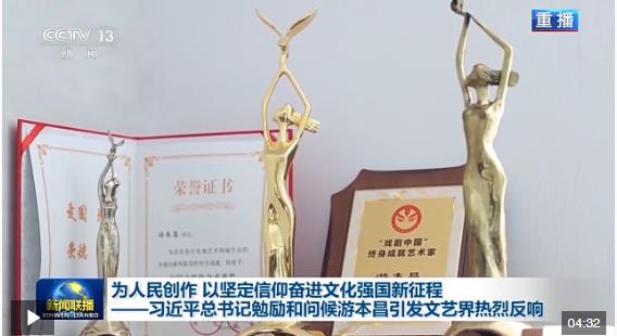 國家話劇院一級演員 游本昌:習近平總書記真是日理萬機,還能對我這樣一個老人拿出時間來,對我進行勉勵。這絕對不是對我一個人的,這是對我們整個的文化界,整個文藝界所有同行們的,這是沉甸甸的一份囑咐。我們一定要全力以赴,全部的力量把它付諸行動,付諸實踐,站牢人民的立場,為人民服務。