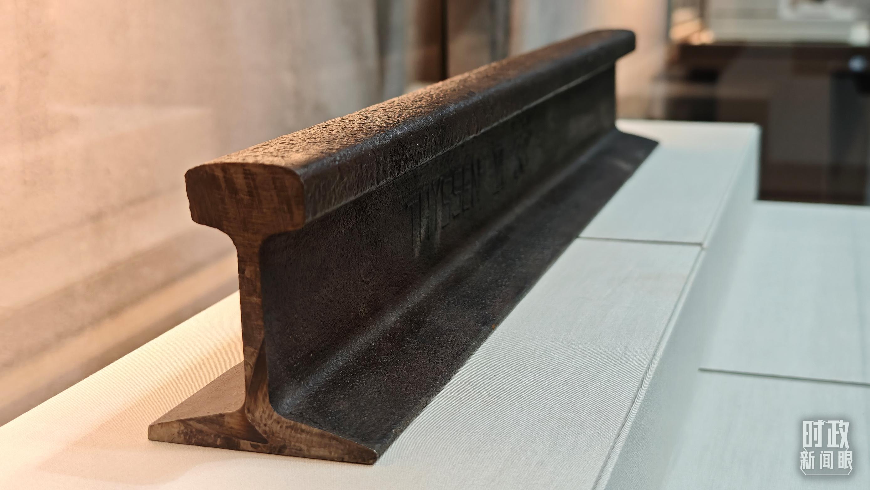 百團(tuán)大戰(zhàn)紀(jì)念館展陳——正太鐵路鐵軌。(總臺央視記者許永松拍攝)