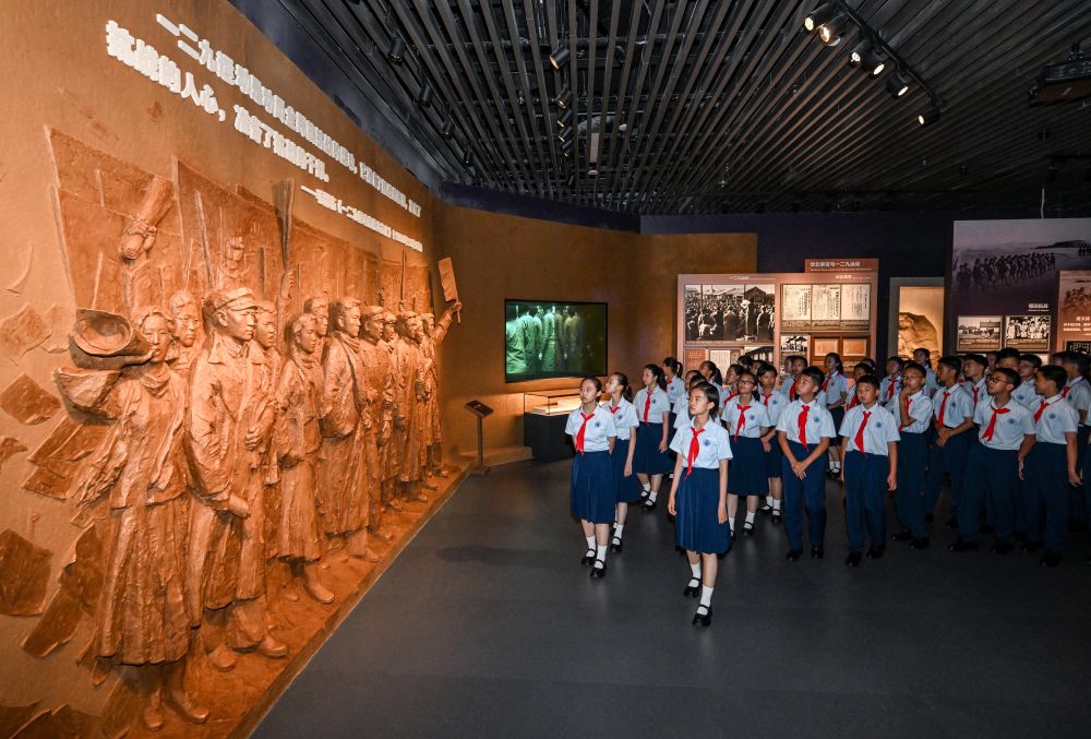 2025年7月7日上午,北京市第十二中學的少先隊員參觀紀念全民族抗戰(zhàn)爆發(fā)88周年儀式暨《為了民族解放與世界和平》主題展覽。新華社記者 陳曄華 攝