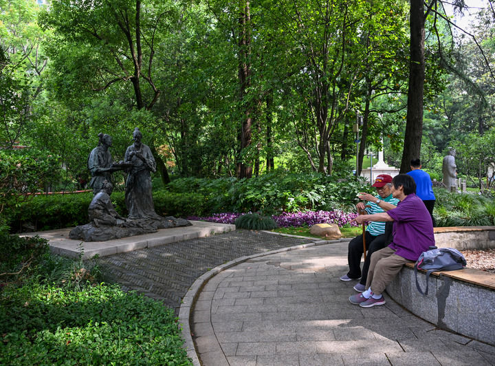 市民在位于上海徐家匯的光啟公園休息(2025年5月17日攝)。新華社記者 陳朔 攝