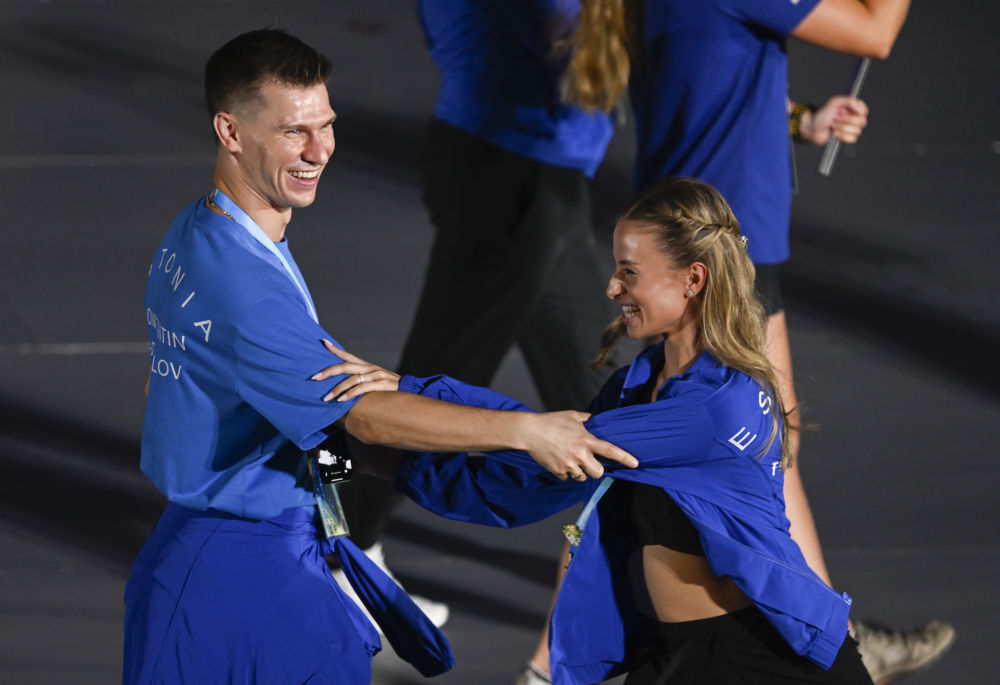 2025年8月7日,愛沙尼亞體育代表團成員在第12屆世界運動會開幕式上起舞。