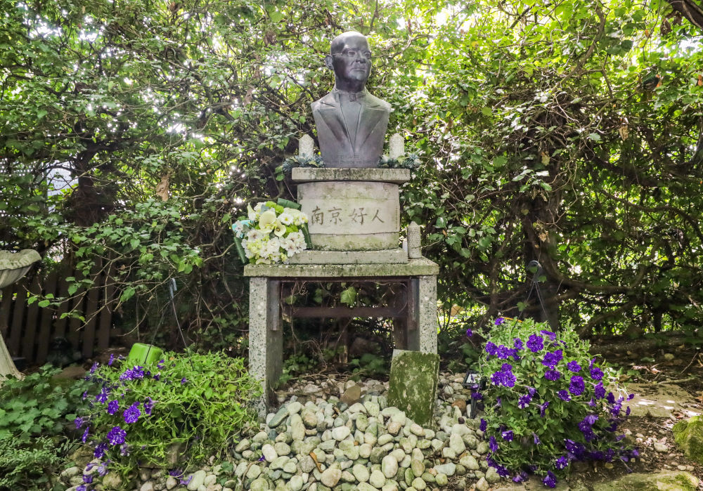 1950年,拉貝逝世,被安葬在柏林西郊。墓碑周圍是從南京移栽而來的竹子、梅花和菊花?;颁佊杏昊ㄊD贡胺酱A⒅惏肷淼裣?,其下立有紀念碑,用中德雙語鐫刻著:“感恩——永遠銘記拉貝先生的國際人道主義善舉!中國·南京?!蹦骨皵[放著憑吊者送上的簇簇鮮花。