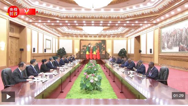 9月4日中午,國家主席習(xí)近平在北京人民大會堂會見來華出席紀(jì)念中國人民抗日戰(zhàn)爭暨世界反法西斯戰(zhàn)爭勝利80周年活動的剛果(布)總統(tǒng)薩蘇。兩國元首宣布將雙邊關(guān)系定位提升為中剛高水平命運共同體。