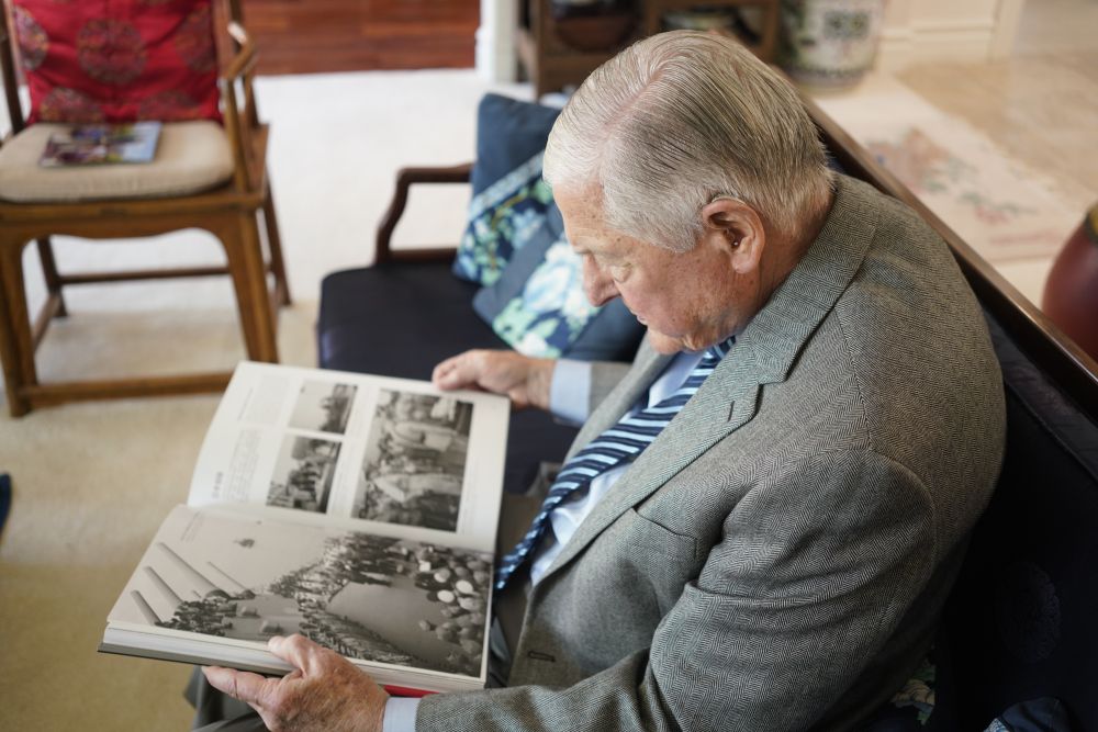 8月11日,史迪威外孫伊斯特布魯克在家中翻看畫冊(cè)。新華社記者 吳曉凌 攝