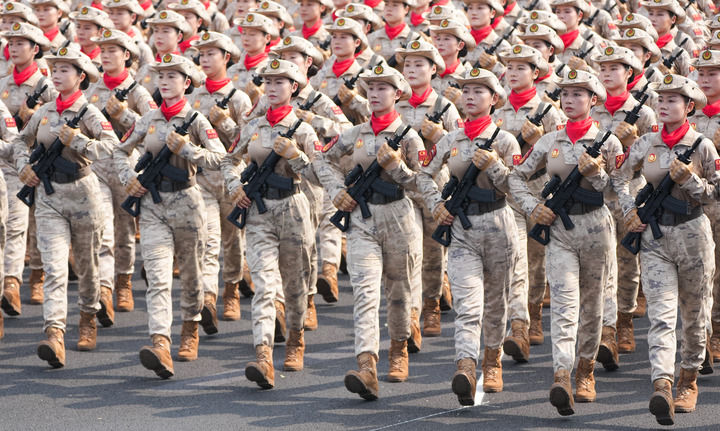 9月3日,天安門廣場。身著蛙式作訓(xùn)服、手握鋼槍的女民兵,身姿挺拔、英姿颯爽。她們來自當(dāng)年的主要抗日根據(jù)地。這是民兵首次亮相以紀(jì)念抗戰(zhàn)為主題的閱兵活動(dòng)。