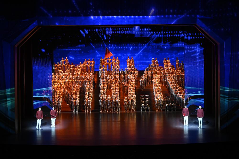 24日的文藝晚會(huì)《美麗新疆》中,創(chuàng)意詩(shī)舞畫(huà)《時(shí)代交響》,以絢麗變幻的聲光電,生動(dòng)描繪天山南北的日新月異。