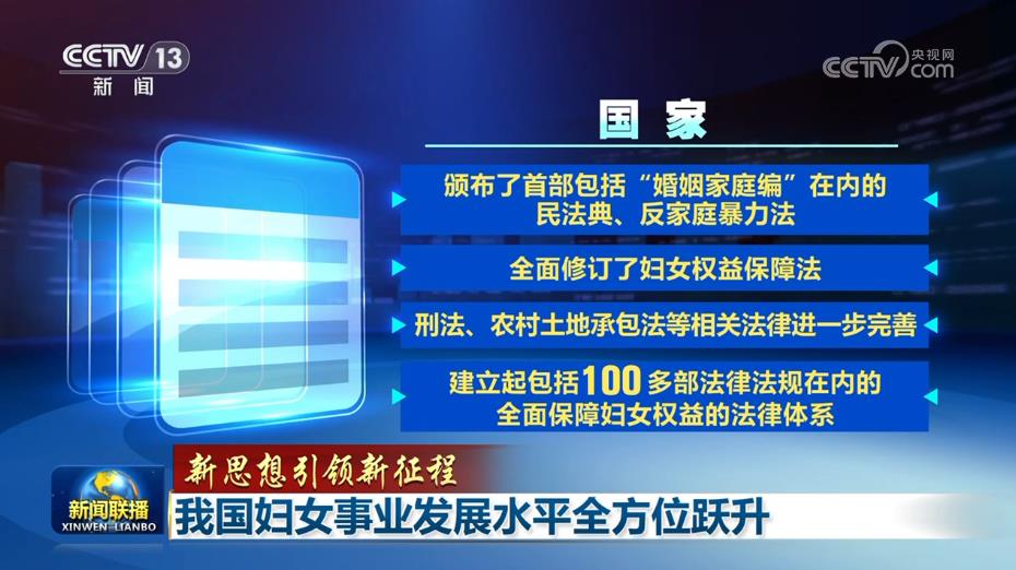 新時代,保障婦女權益作為國家意志充分彰顯,法治保障體系更加完善。國家頒布了首部包括“婚姻家庭編”在內的民法典、反家庭暴力法,全面修訂了婦女權益保障法,刑法、農村土地承包法等相關法律進一步完善,建立起包括100多部法律法規(guī)在內的全面保障婦女權益的法律體系。