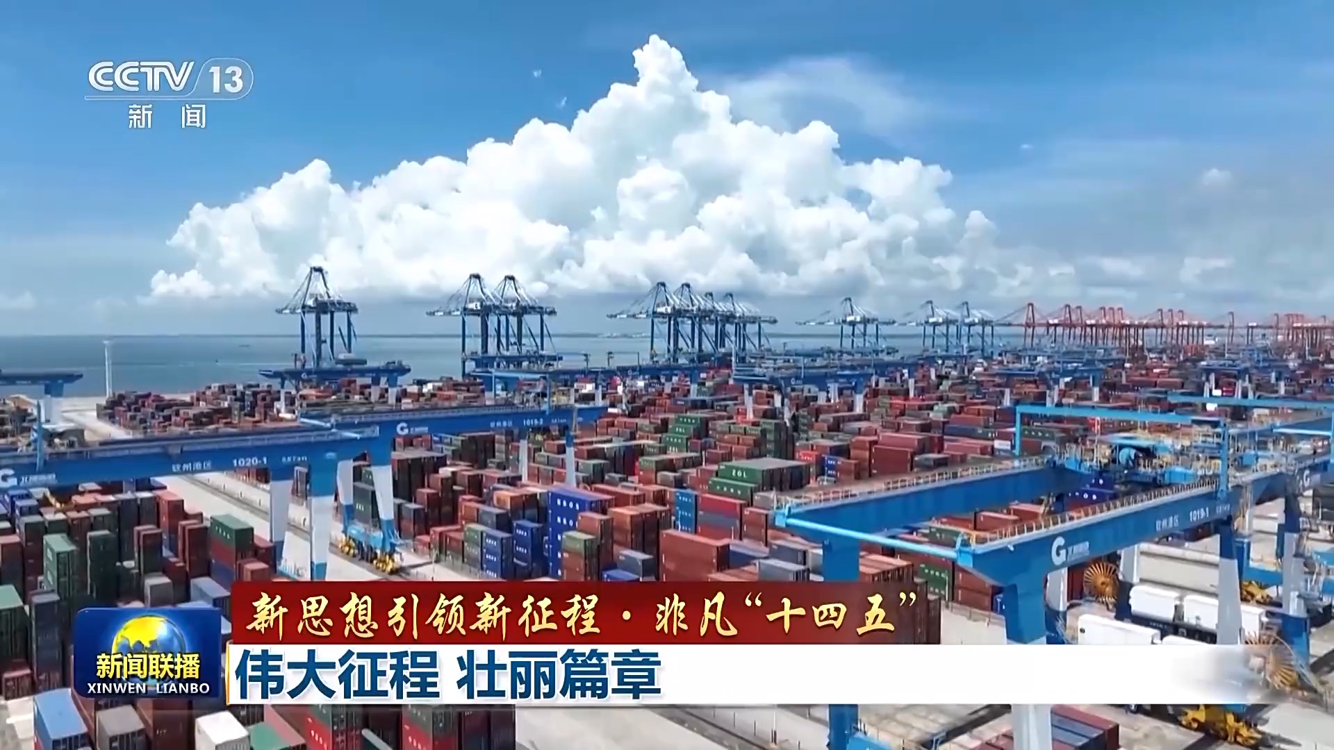 這是欣欣向榮的奮進(jìn)中國。五年經(jīng)濟(jì)增量預(yù)計超過35萬億元,高于世界排名第三國家的經(jīng)濟(jì)總量。對世界經(jīng)濟(jì)增長的貢獻(xiàn)率保持在30%左右;貨物貿(mào)易規(guī)模較“十三五”末增長了32.4%,連續(xù)8年穩(wěn)居全球第一。