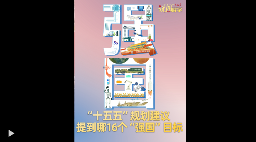 “十五五”規(guī)劃建議中提到了16個(gè)“強(qiáng)國”目標(biāo)。規(guī)劃建議聚焦哪些實(shí)際問題?我們將在哪些地方發(fā)力?一支視頻讀懂。