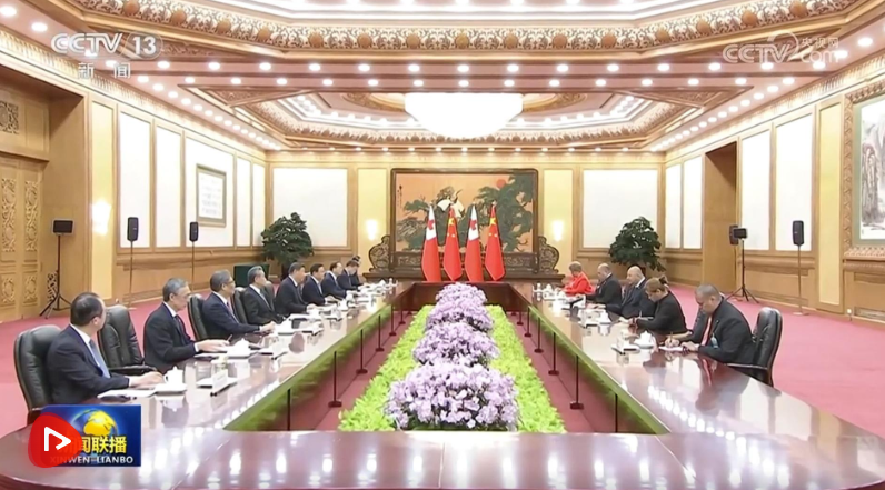 11月25日上午,國家主席習(xí)近平在北京人民大會堂會見來華進行國事訪問的湯加國王圖普六世。