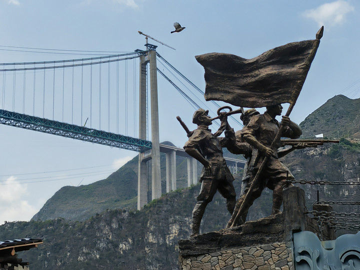 這是2025年4月28日拍攝的貴州花江峽谷大橋。9月28日,新的世界第一高橋——貴州花江峽谷大橋建成通車。近處的則是一座建于1898年、由14根鐵鏈組成的花江鐵索橋。1935年4月,中央紅軍右路縱隊(duì)挺進(jìn)黔西南,死守花江鐵索橋這一戰(zhàn)略要沖,確保紅軍主力順利搶渡北盤江。新舊兩座橋,橫跨著百年歷史風(fēng)云,見(jiàn)證著血與火的艱辛歷程。
