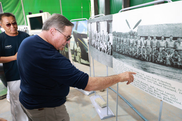 2025年7月16日,美中航空遺產(chǎn)基金會(huì)主席杰夫·格林在貴州黃平舊州機(jī)場(chǎng)查看飛虎隊(duì)資料照片。抗戰(zhàn)時(shí)期,舊州機(jī)場(chǎng)主要承擔(dān)飛機(jī)加油、彈藥補(bǔ)充和維修任務(wù)。常駐于此的美國(guó)飛虎隊(duì)?wèi)?zhàn)機(jī)頻頻在該機(jī)場(chǎng)起降,參加了湘西會(huì)戰(zhàn)、衡陽(yáng)保衛(wèi)戰(zhàn)等著名戰(zhàn)役。該機(jī)場(chǎng)見(jiàn)證了中美聯(lián)合反抗法西斯的光輝歷史,還為確?!榜劮搴骄€”的順利暢通發(fā)揮了舉足輕重的作用。