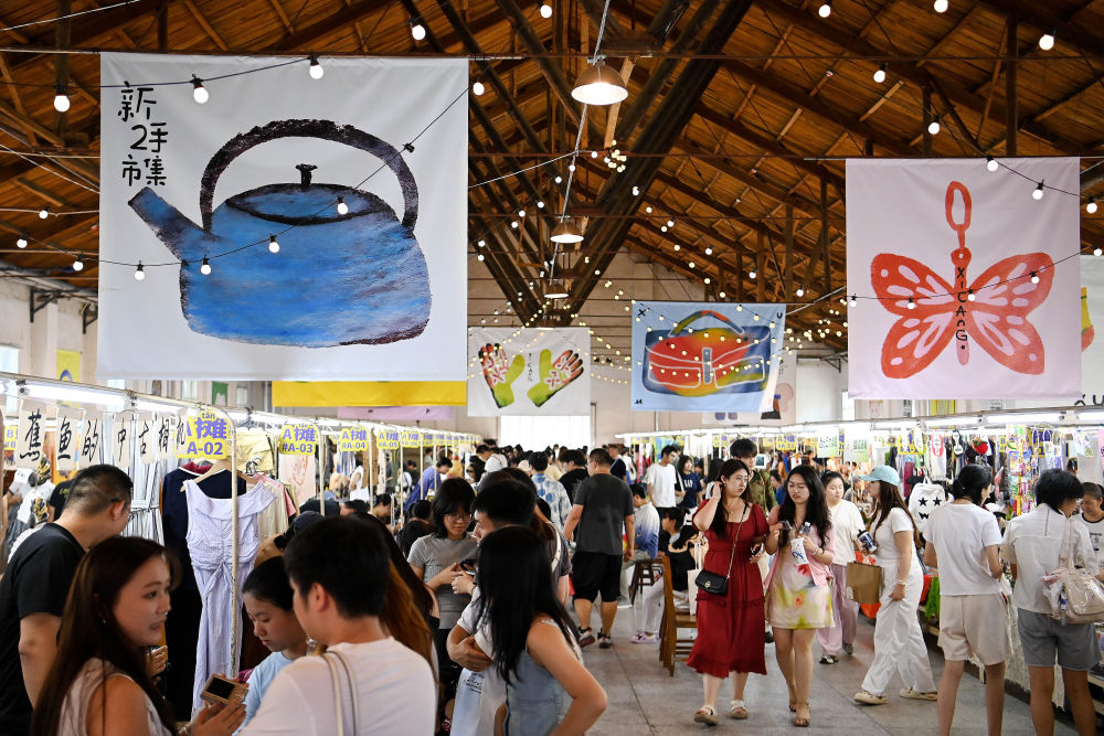 2025年7月5日,游客在西安西倉市集文創(chuàng)公園內的“新二手市集”上參觀游覽。2024年以來,西安對西倉區(qū)域實施“微更新、輕改造”,在保留核心區(qū)傳統集市風貌的基礎上,升級改造原有設施,建設西倉市集文創(chuàng)公園,打造“復合型文化消費新場景”;通過引入創(chuàng)新業(yè)態(tài)、開設“新二手市集”等方式,讓咖啡潮玩、非遺體驗、城市記憶展覽等年輕化元素與市井煙火相融共生,使老城核心區(qū)在“微更新”中持續(xù)煥發(fā)新活力。