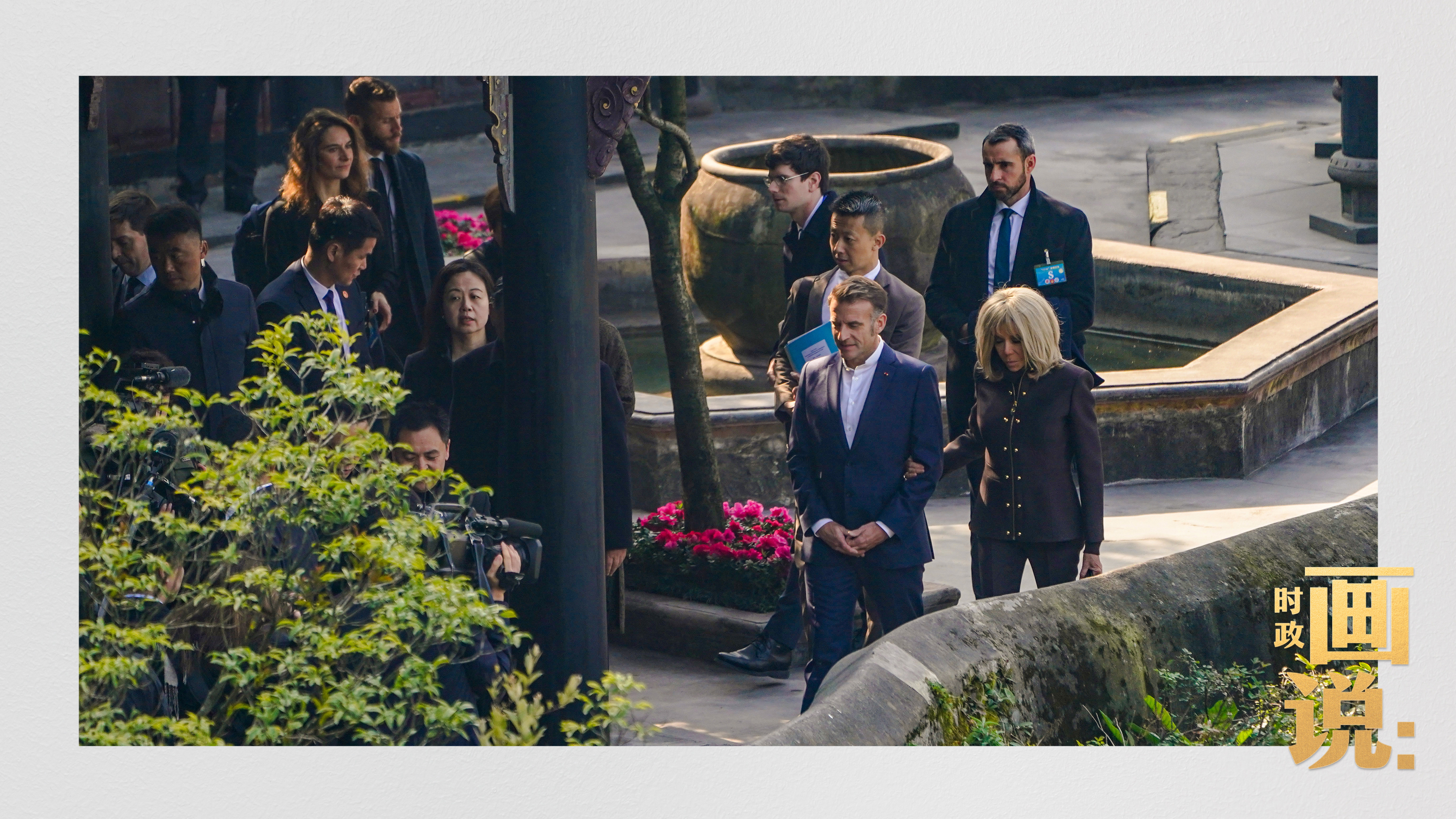 △習近平和夫人彭麗媛同馬克龍夫婦在都江堰進行友好交流