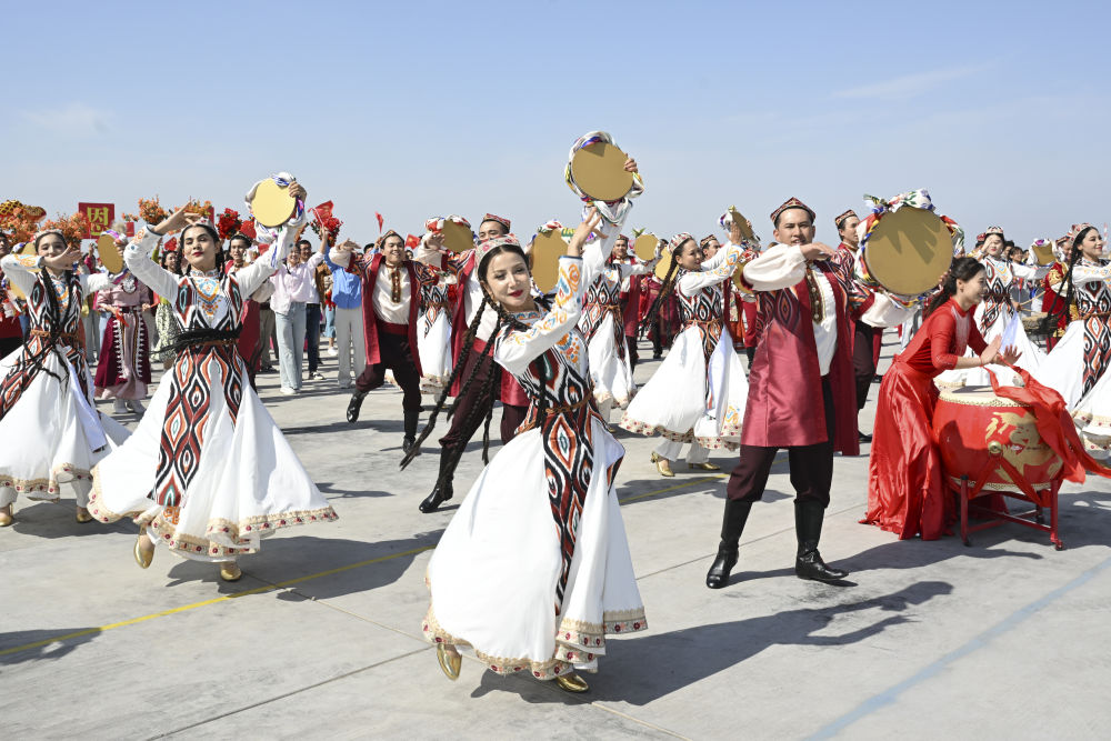 2025年9月23日下午,群眾載歌載舞,喜迎新疆維吾爾自治區(qū)成立70周年。新華社記者 謝環(huán)馳 攝