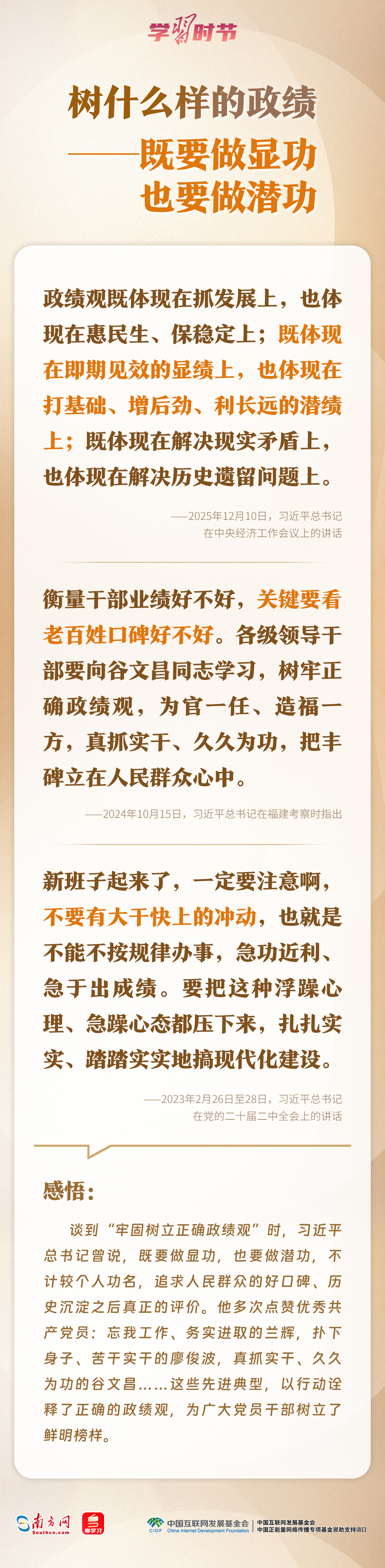 今年是“十五五”開局之年,如何確保開好局、起好步?近日,習近平總書記在省部級主要領導干部學習貫徹黨的二十屆四中全會精神專題研討班開班式上這樣強調,要樹立和踐行正確政績觀,堅持從實際出發(fā)、按規(guī)律辦事,自覺為人民出政績、以實干出政績。