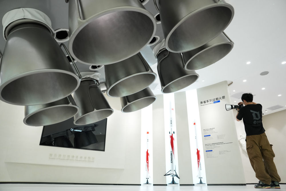 強(qiáng)化產(chǎn)業(yè)圈聯(lián)動(dòng)發(fā)展,是北京持續(xù)提升科技成果區(qū)域內(nèi)轉(zhuǎn)化效率和比重的有效舉措。以商業(yè)航天產(chǎn)業(yè)為例,目前,扎根北京的商業(yè)航天百強(qiáng)企業(yè)、上市企業(yè)和獨(dú)角獸企業(yè)約占全國(guó)半壁江山。產(chǎn)業(yè)鏈覆蓋運(yùn)載火箭、衛(wèi)星制造、地面站及終端設(shè)備、衛(wèi)星應(yīng)用服務(wù)全領(lǐng)域。這是2025年6月18日在北京經(jīng)濟(jì)技術(shù)開發(fā)區(qū)藍(lán)箭航天空間科技股份有限公司拍攝的朱雀系列運(yùn)載火箭模型。
