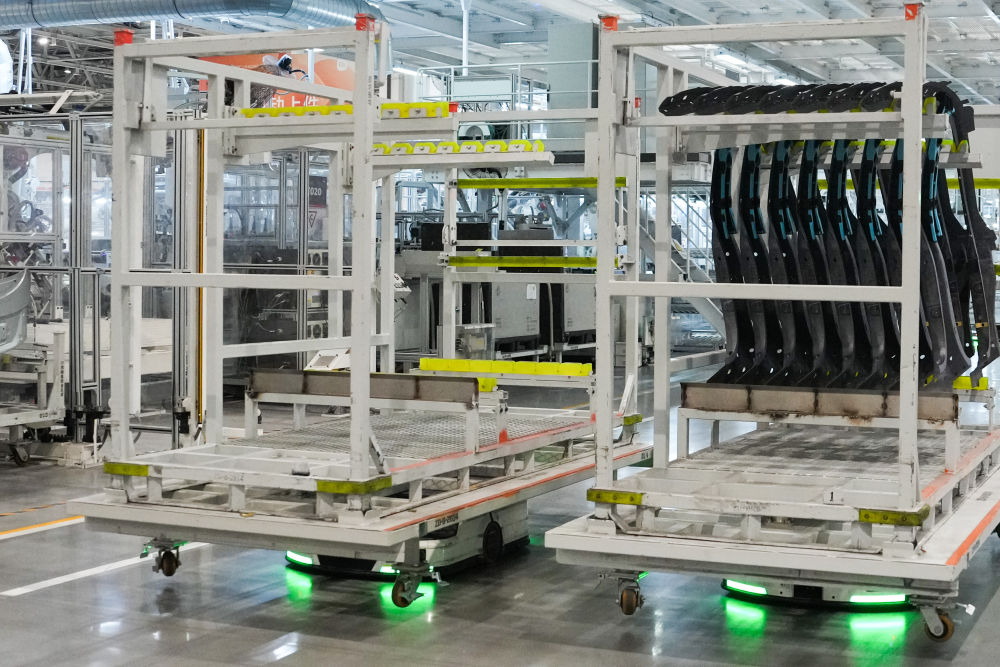 從研發(fā)制造到測(cè)試應(yīng)用,北京發(fā)揮汽車產(chǎn)業(yè)長(zhǎng)期積累,積極擁抱新品牌、新技術(shù),新模式,新能源汽車產(chǎn)業(yè)蓬勃發(fā)展,產(chǎn)業(yè)鏈供應(yīng)鏈不斷鞏固完善。這是自主移動(dòng)機(jī)器人在北京小米汽車工廠搬運(yùn)物資(2025年6月16日攝)。